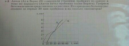 Антон пробежал за 40 мин 5 кл а Борис за 1 час 6 кл Антон 3км20м а борис 3 кл за 30 мин