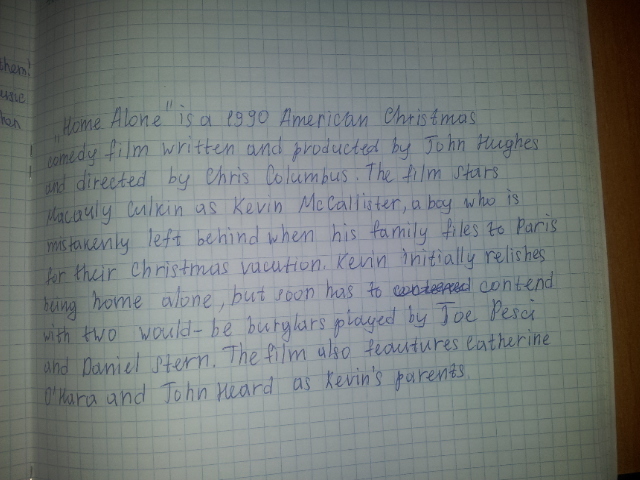 СРОЧНО ОЧЕНЬ СРОЧНО прошу! СОЧИНЕНИЕ ПО АНГЛИСКОМУ(НА АНГЛИСКОМ) Я ЛЮБЛЮ ФИЛЬМ ОДИН ДОМА НУЖНО ПРО НЕГО СОЧЕНЕНИЕ 50-80 слов 5 КЛАССС не брать с интернета (спасибо зарание)