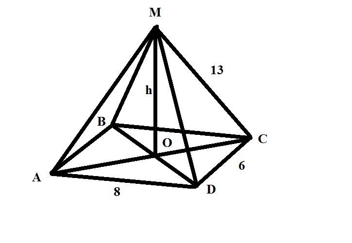Высота МО опущена в центр пересечения диагоналей АС и ВD