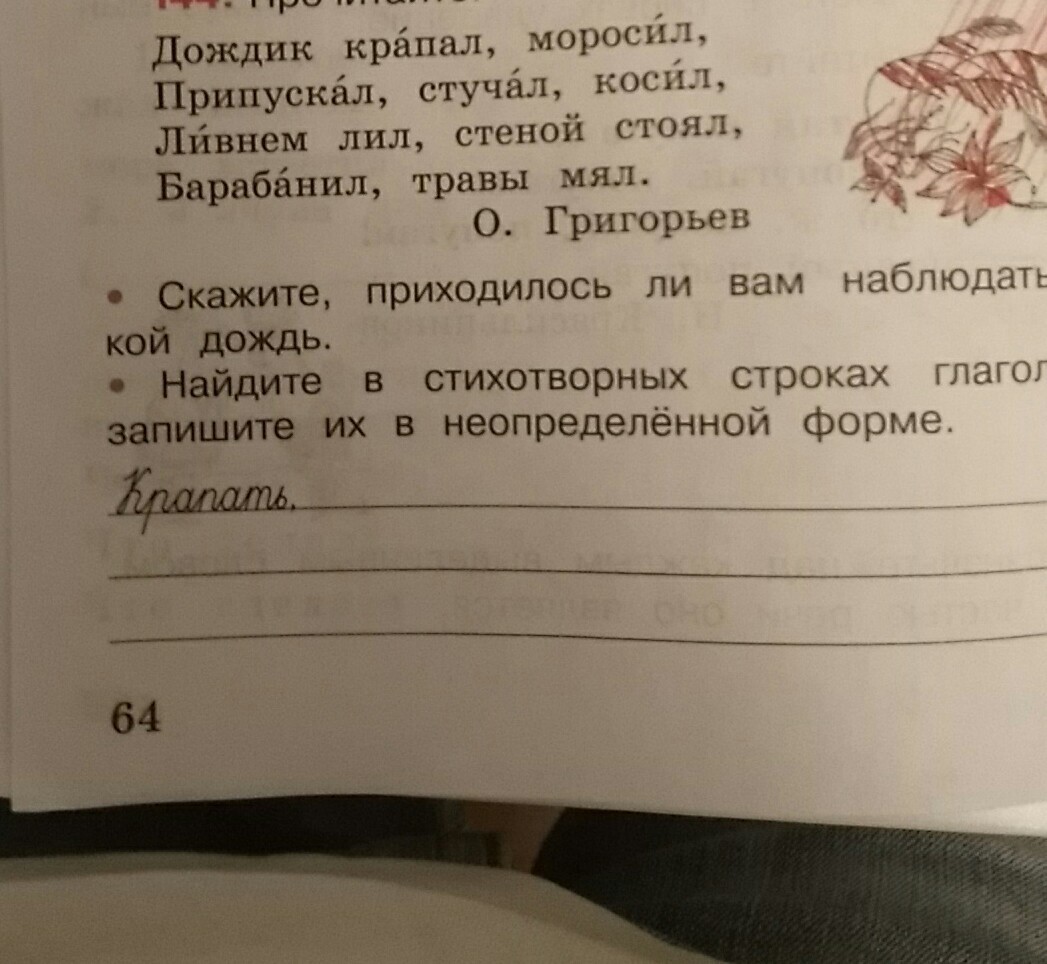 Моросить, припускать,стучать,косить,лить, стоять, барабанить, мять