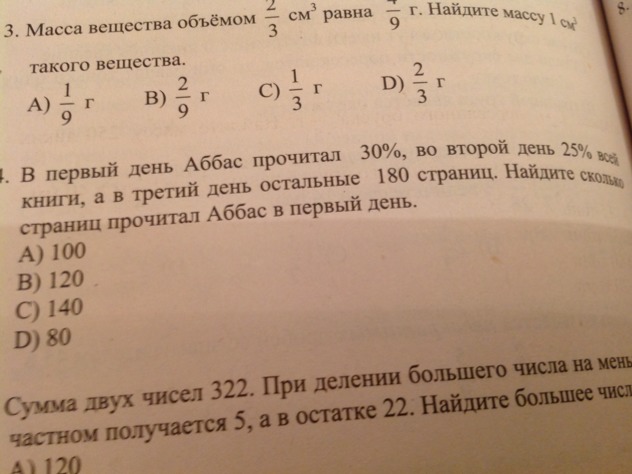 Ответ: 120 страниц прочитал Аббас в первый день. Ответ В.