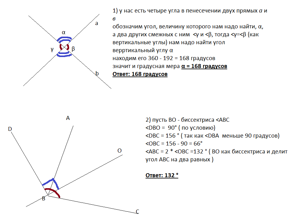 2)Через вершину угла АВС проведена прямая ВД перпендикулярно биссектрисе этого угла. Найти величину угла АВС, если прямая ВД образует с одной из сторон угла АВС угол, величина которого равна 156гр.