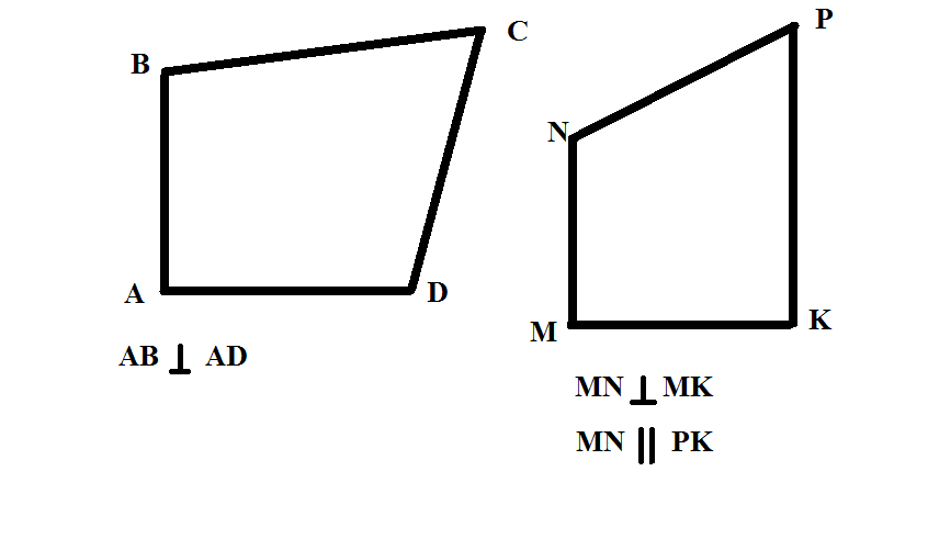 а) тільки дві сторони перпендикулярні й немає паралелбних сторін;