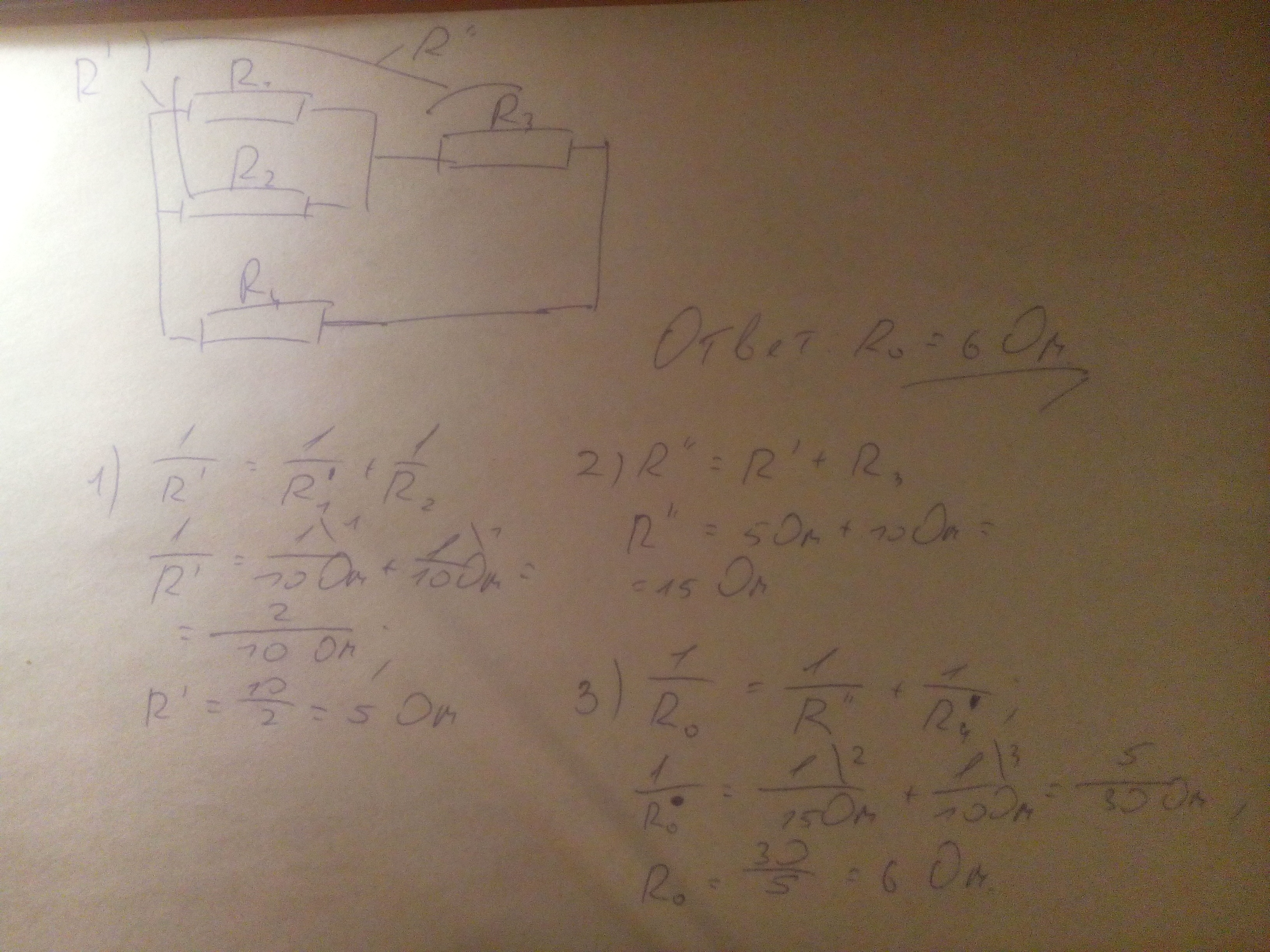 найти общее сопротивление данного участка цепи если сопротивление каждого резистора 10 Ом