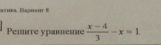 (х-4) : 3 - х =1