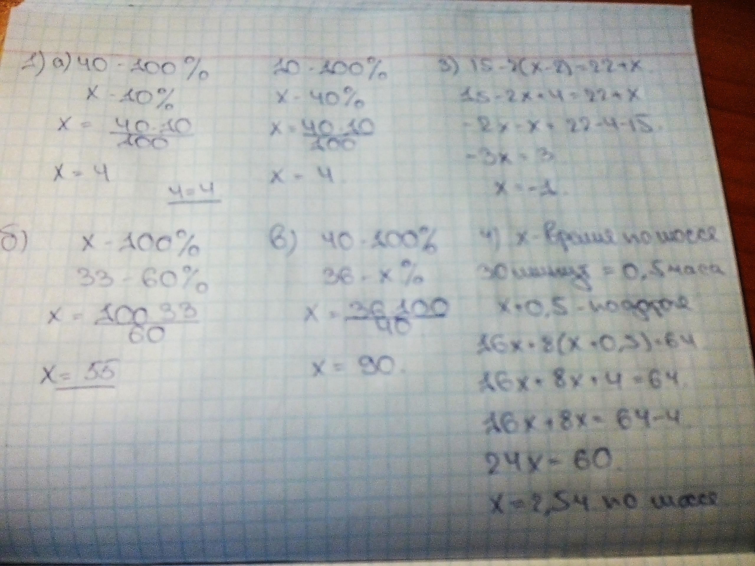в) Из ружья сделали 40 выстрелов, при этом было 4 промаха. Определите процент