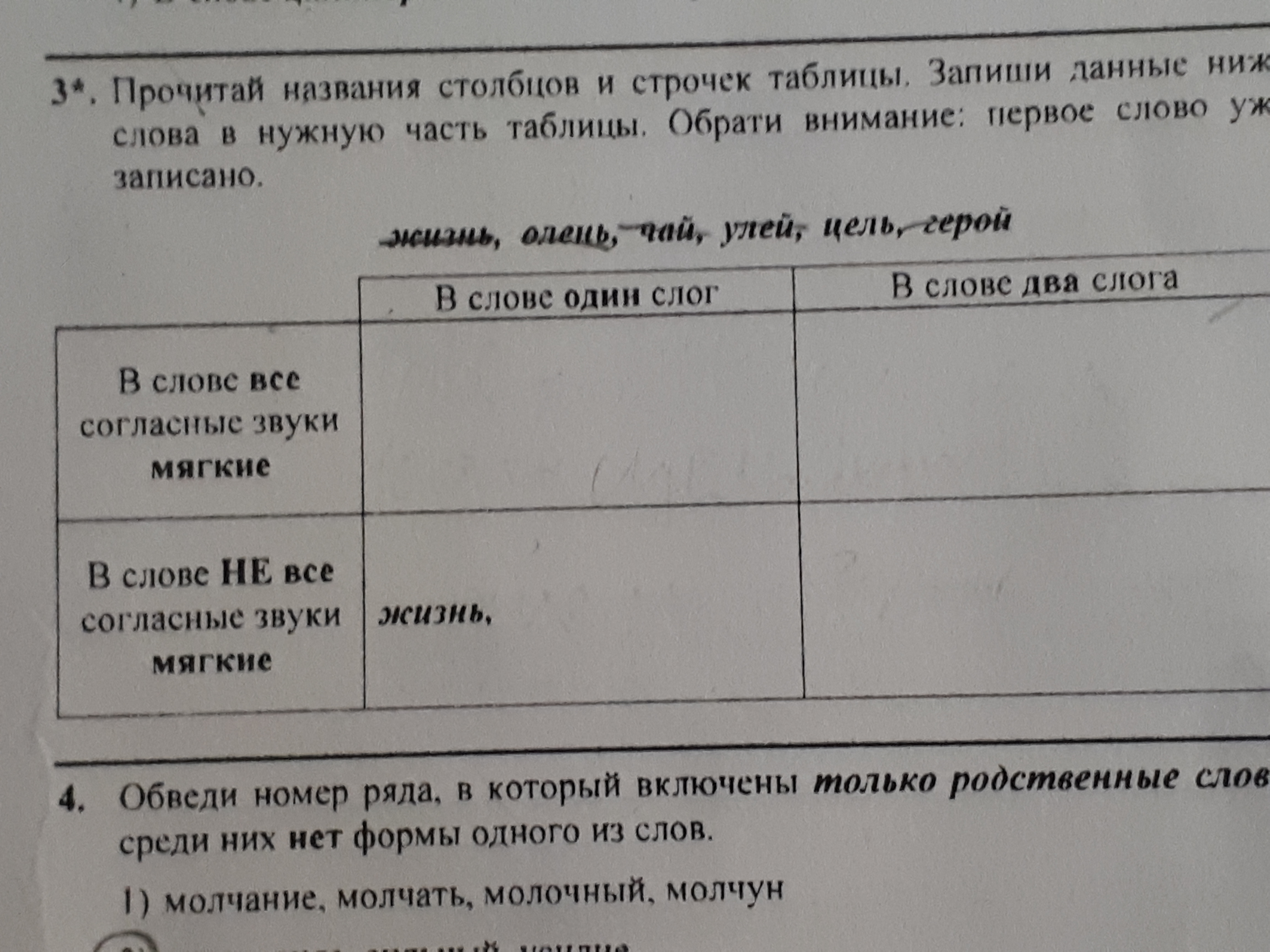 Прочитайте названия столбцов и строчек таблицы запиши данные ниже слова в нужную часть таблицы.Обрати внимание 1 слово уже записано жизнь олень чай улей цель герой. Помогите пожалуйста очень надо