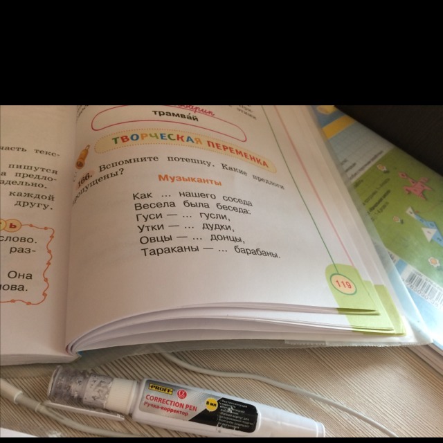 Как у нашего соседа Весела была беседа: Гусли-в гусли, Утки-в дудки, Овцы-в донцы, Тараканы-в барабаны.