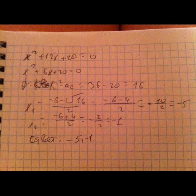 x^2 +12x +20 =0