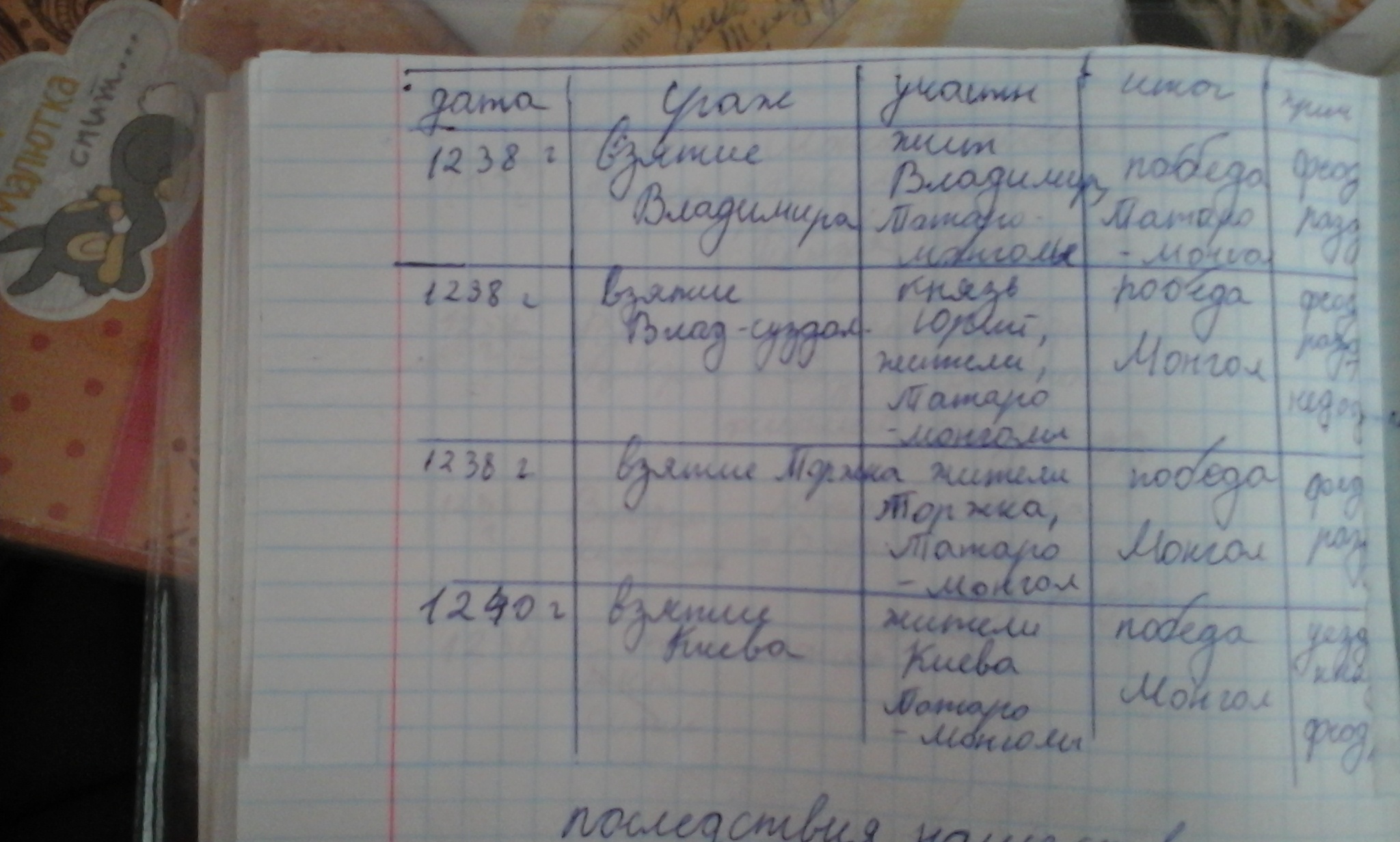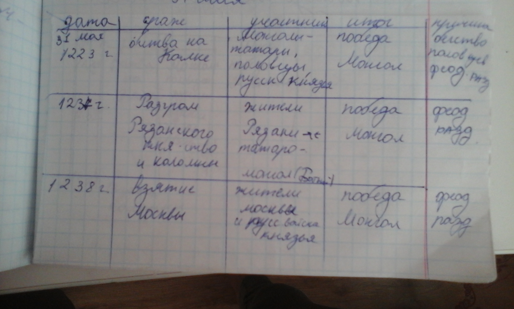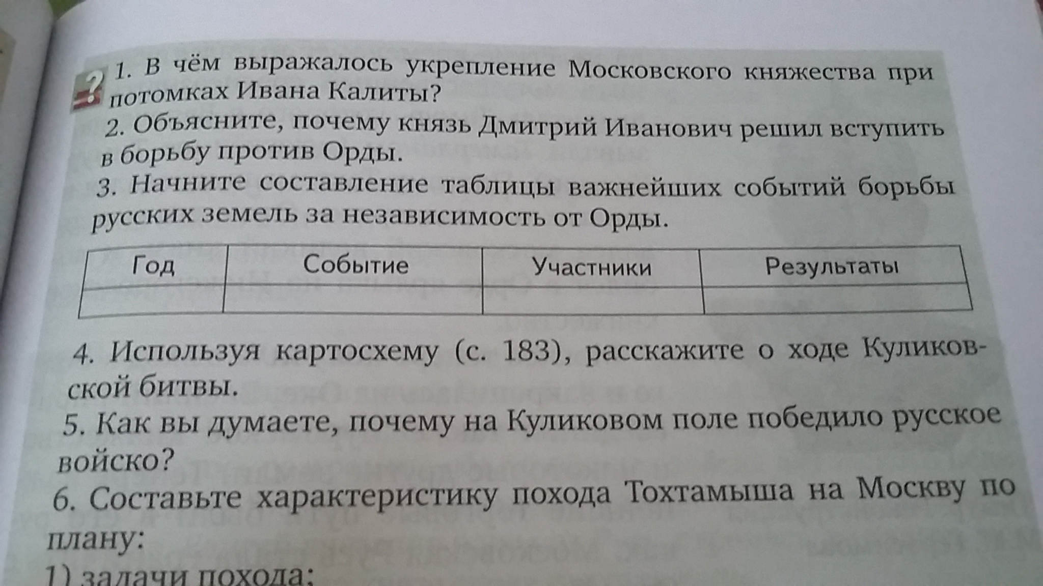 Начните состовлять таблицы важнейших событий борьбы русских земель за независимость от Орды