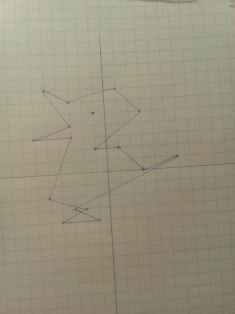 ( 3;0) (1;2); (-1;2) ; (3;5) (1;7) (-3;6) (-5;7) (-3;4) (-6;3) (-3,3) (-5;-2) (-2;-3) (-4;-4) (1;-4) (3;-3) (6;1) (3;0)