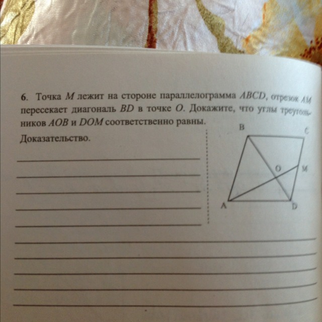 Угол ВАО=углу ОМD- они накрест лежащие при параллельных АВ ; СD ( противоположные стороны параллелограмма параллельны) и секущей АМ