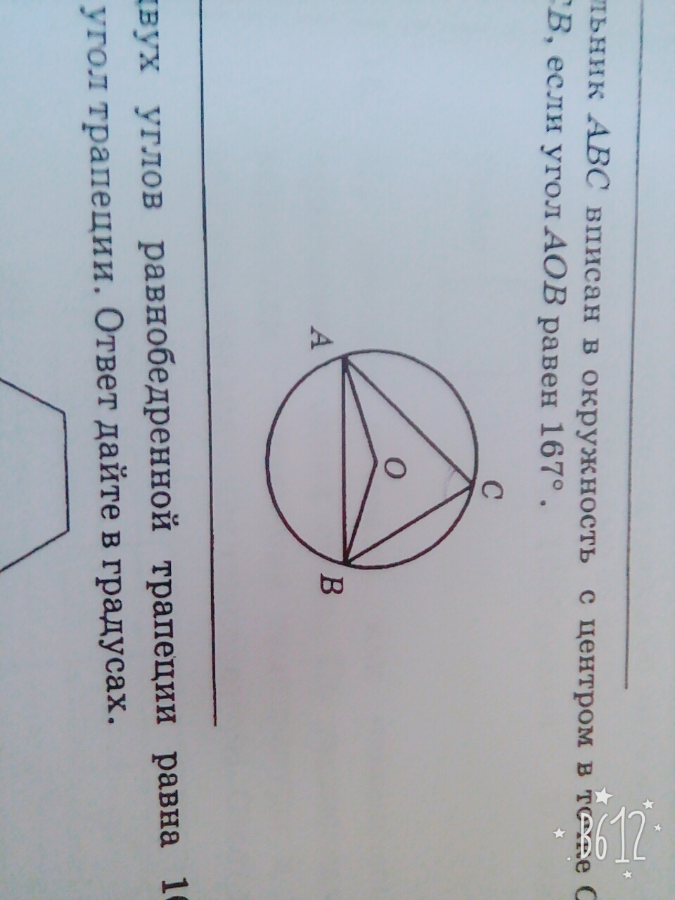 ∠АОВ - центральный, ∠AOB=167°