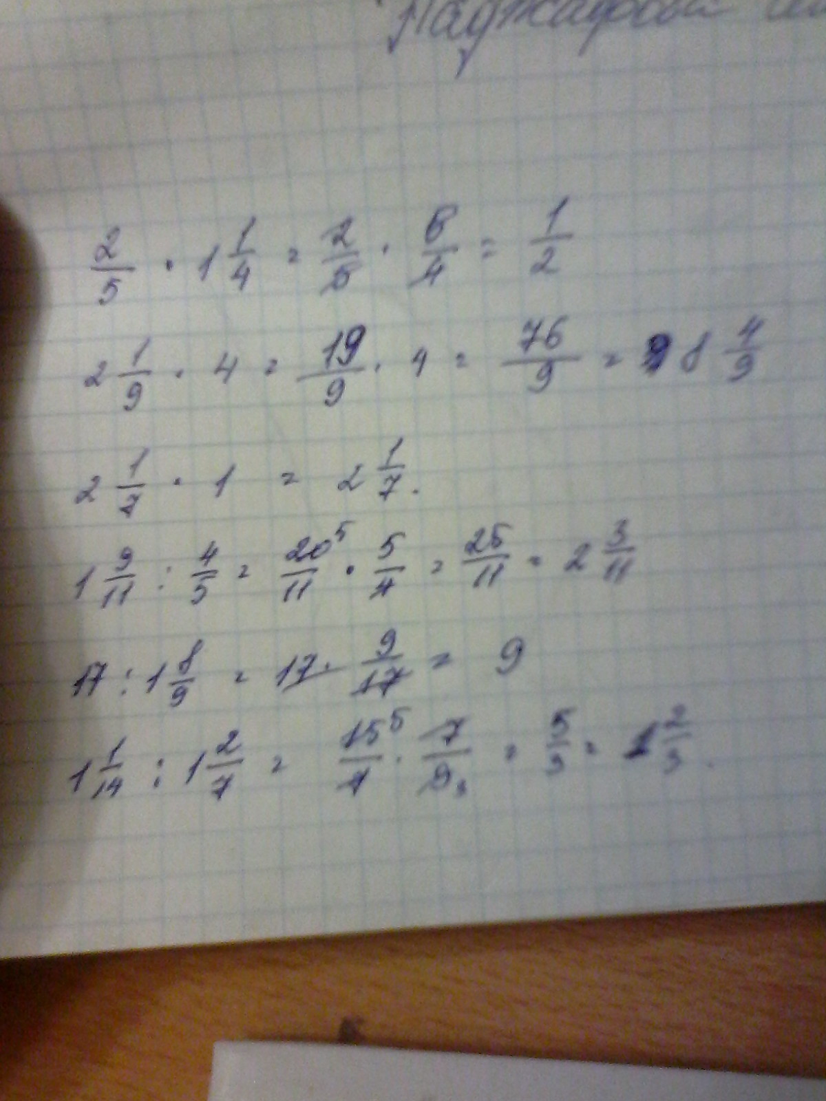 2/5*1целое1/4 2целых1/9*4 2целых 1/7*1целых 1целое9/11делить4/5 17целых/1целое8/9 1целое1/14/1целое2/7 вычислите пожалуйста.