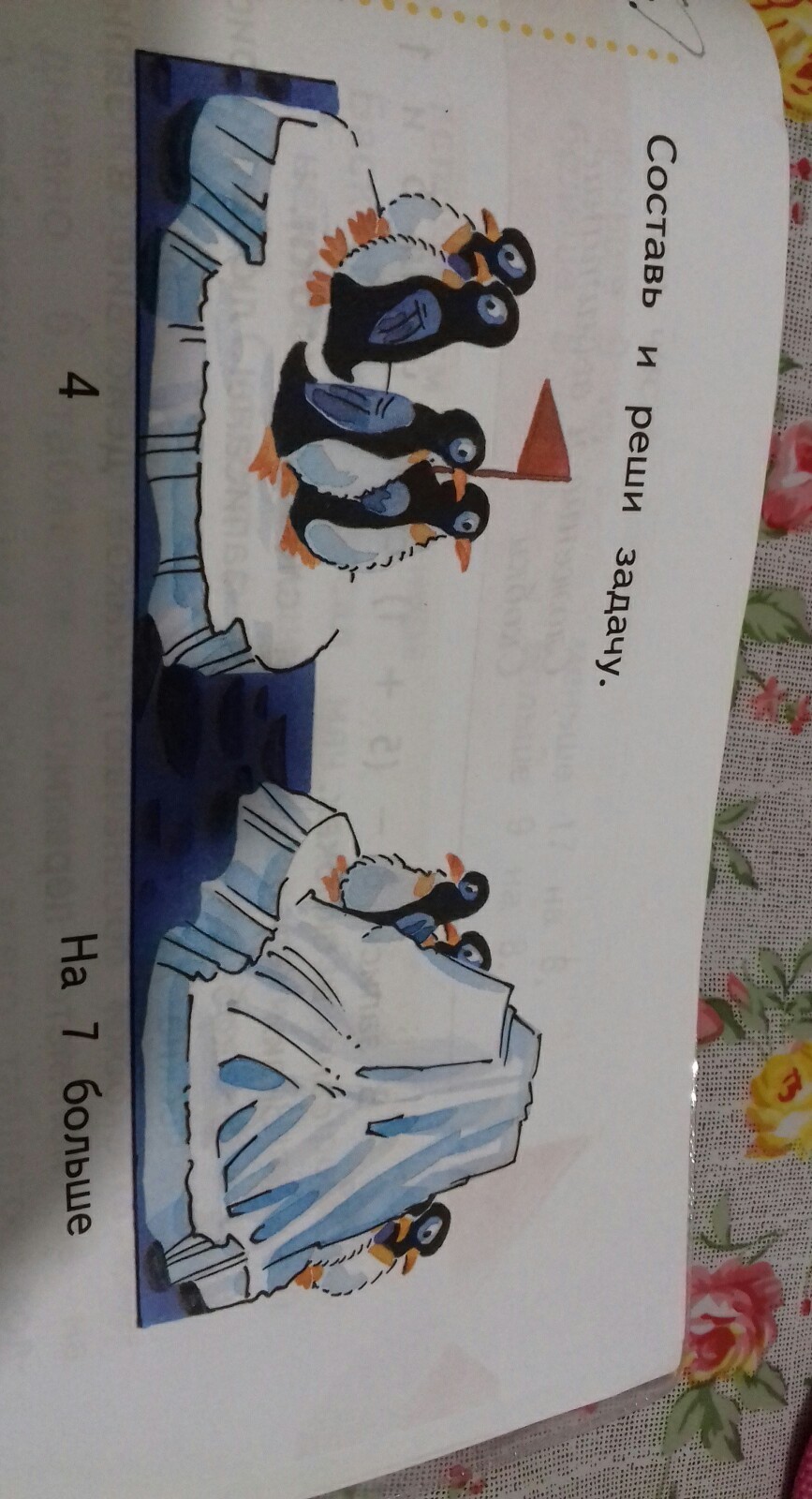 на одной льдине сидело 4 пингвина, а на второй на 7 больше. сколько пингвинов сидело на 2 льдине?