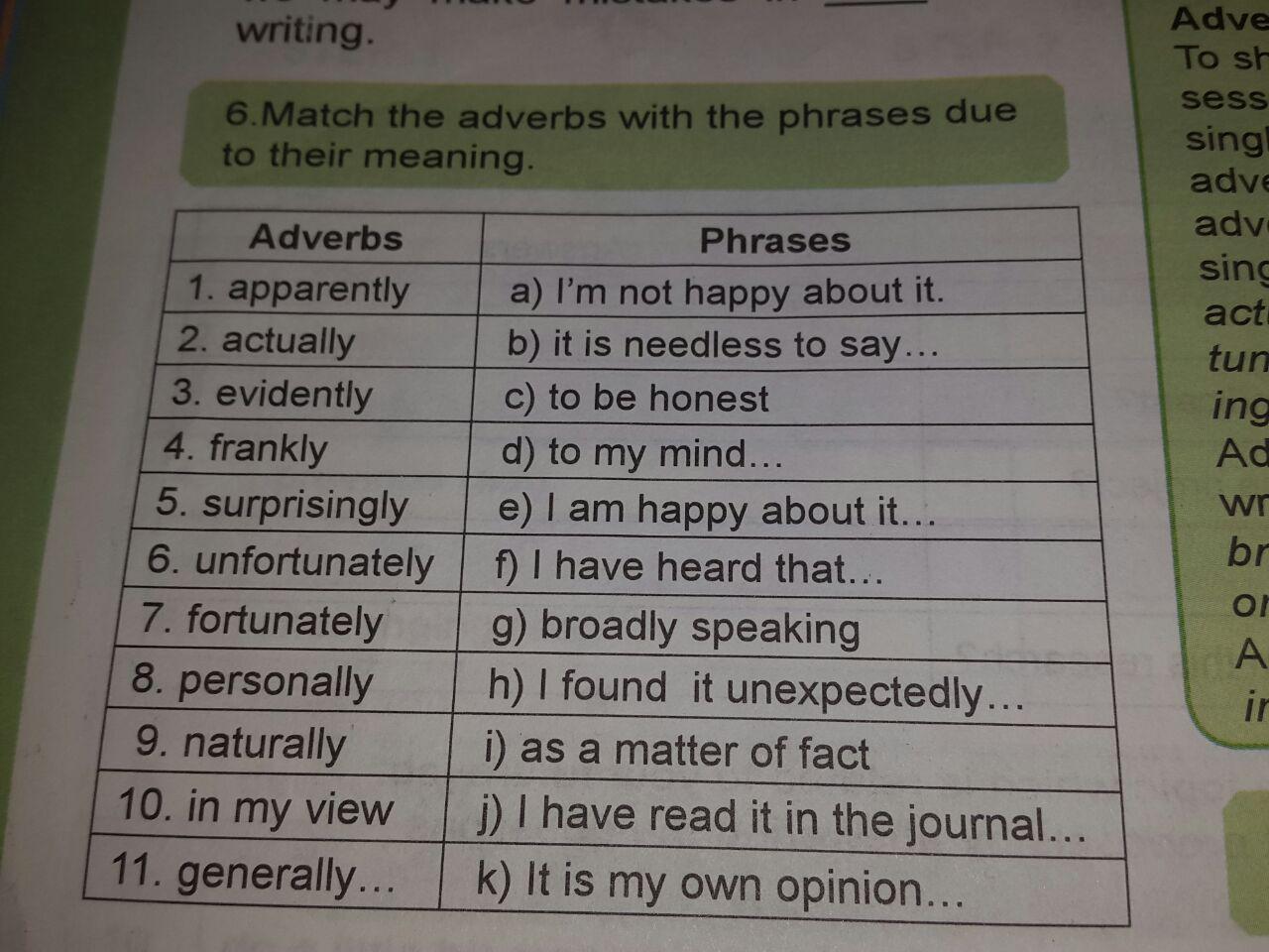 6. unfortunately a) I’m not happy about it. - к несчастью - я несчастлив