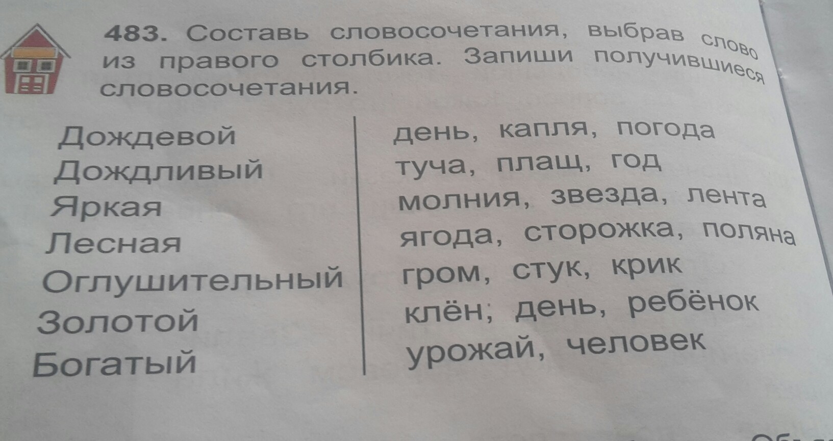 Составь словосочетания, выбрав слово из правого столбика . Запиши получившиеся словосочетания.