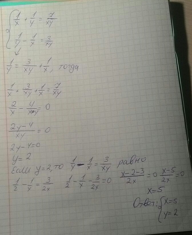 Получается, что 1/у=(3/ху+1/х).