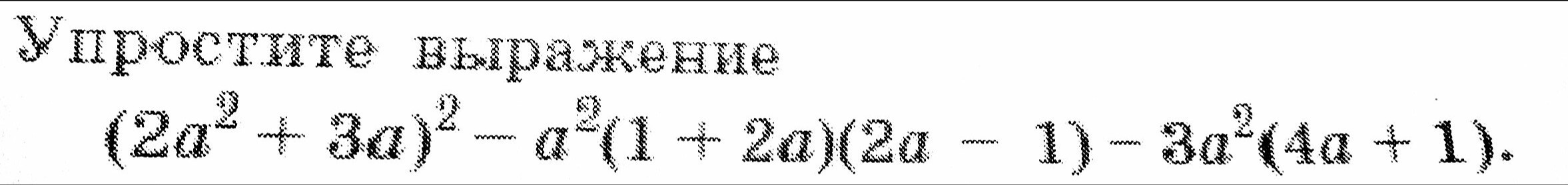 (2а^2+3а)^2 - а^2(1+2а)(2а-1)-3а^2(4а+1)=4а^4+12а^3+9а^2-4а^4+а^2-12а^3-3а^2=7а^2 Держи