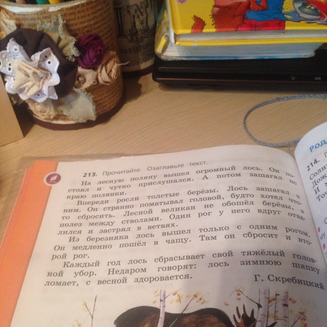 На лесную поляну вышел лось.Он подошёл к берёзам и начал что то сбрасывать.У него отпал один рог,а после он сбросит второй.Это происходит каждый год.