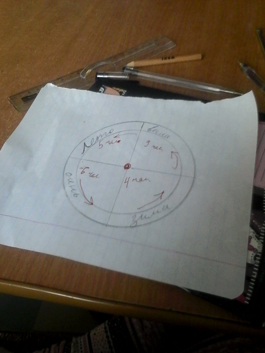 В классе 5 человек родилось летом,4 человека- зимой,6 человек осенью, а 9 человек-весной.Используя эти данные, составьте круговую диаграмму