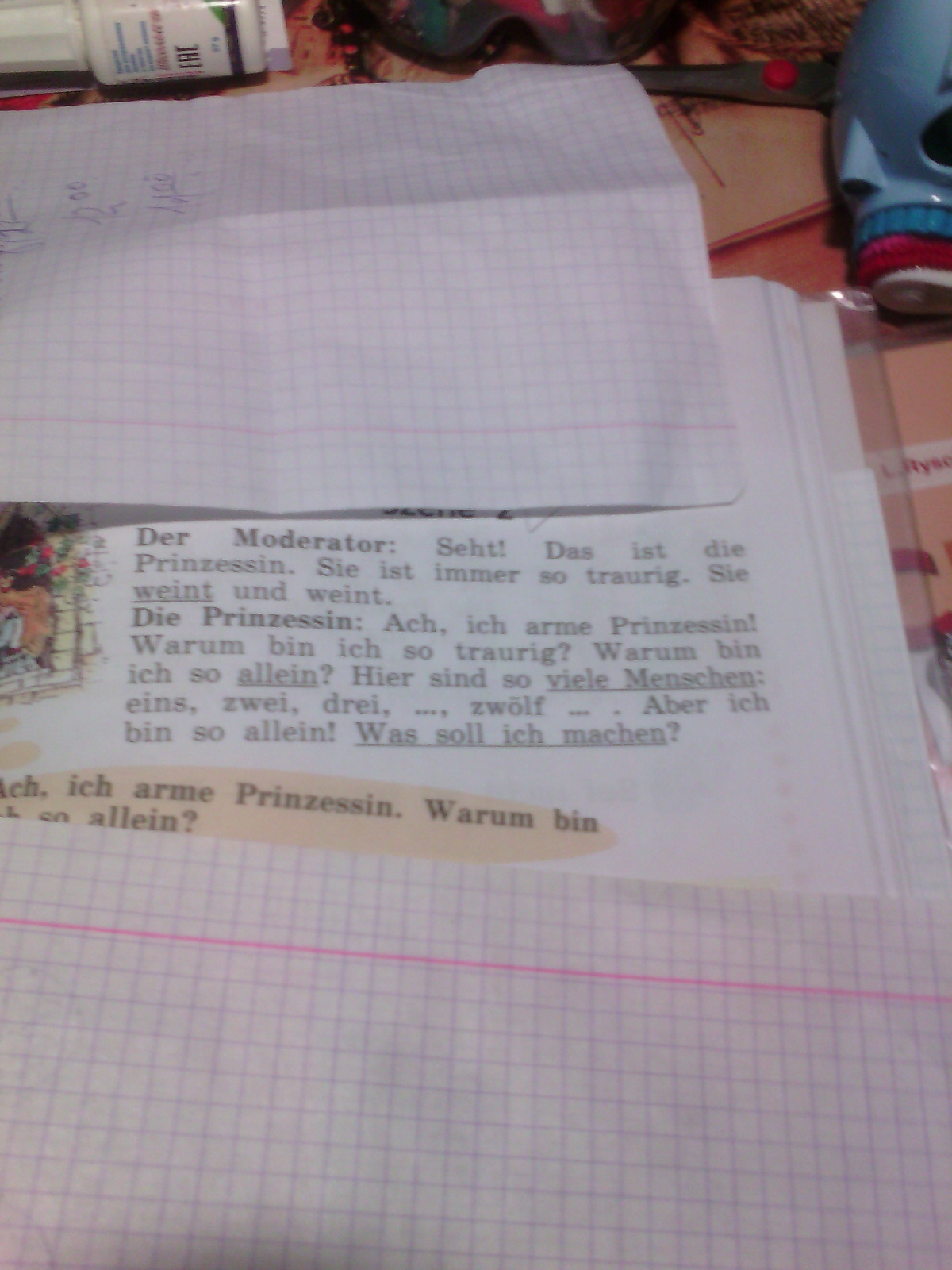 Принцесса:Ах , я бедная принцесса! Почему я такая грустная ? Почему я такая одинокая? Тут так много людей: 1,2,3,....12....Но я такая одинокая! Что я должна делать?