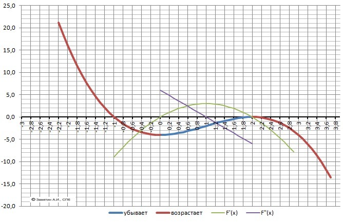 Убывает - X∈(-∞;0]∪[2;+∞)