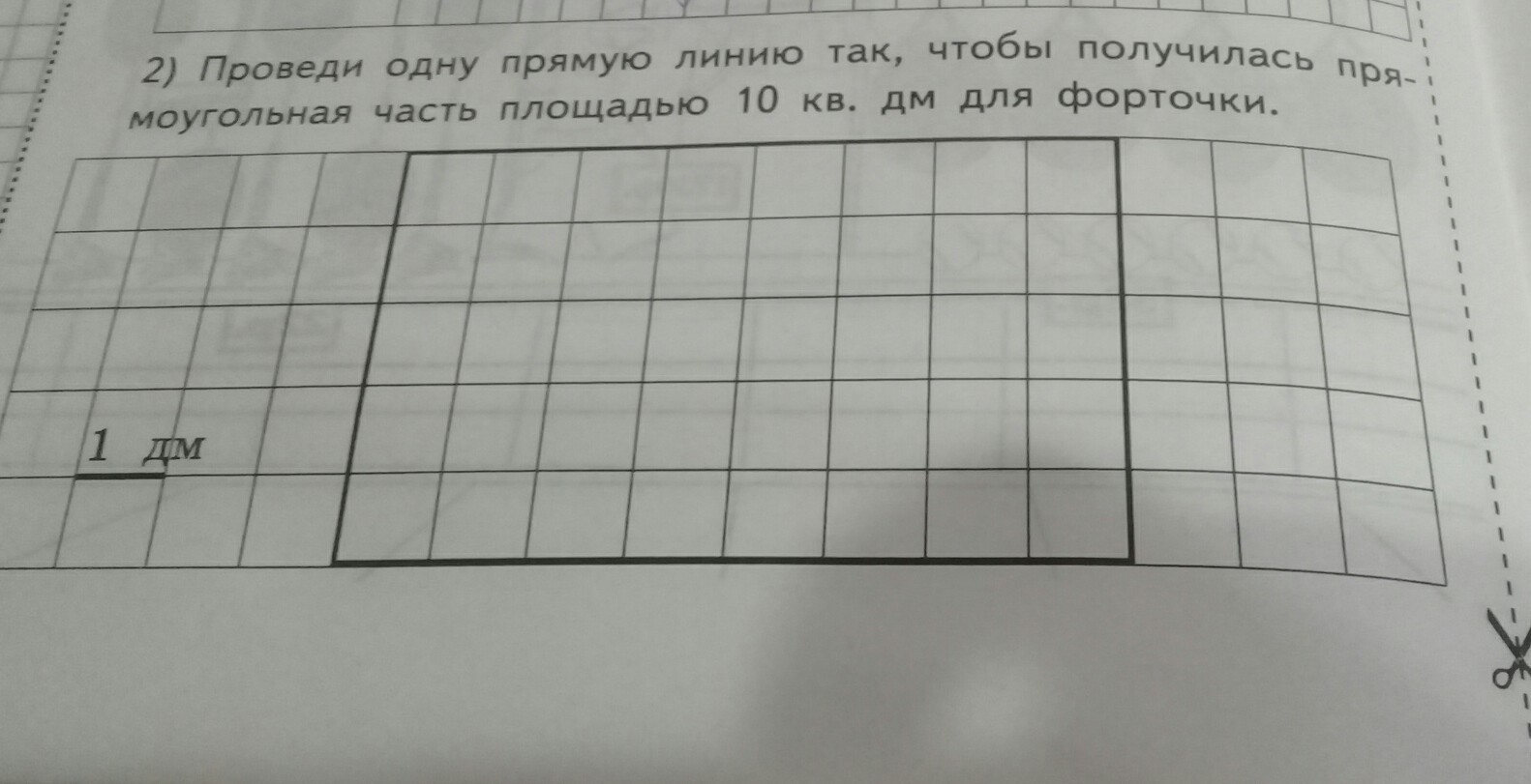 ну там надо от края 2 клетки отступить с низу и прочертить должно получиться 2 и 5 клетки чертишь это и пишешь 2*5=10 кв дм