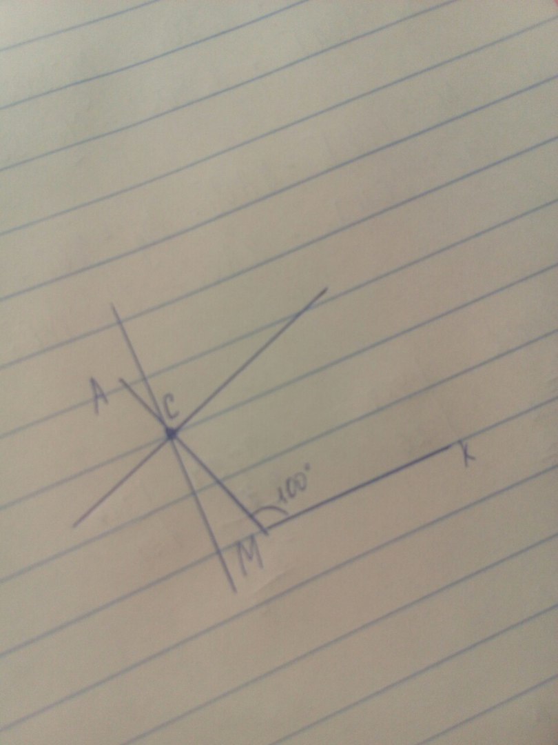 постройте угол АМК равный 100° и на любой из его сторон отметьте точку С проведите через точку С прямые перпендикулярные сторонами МА и МК этого угла