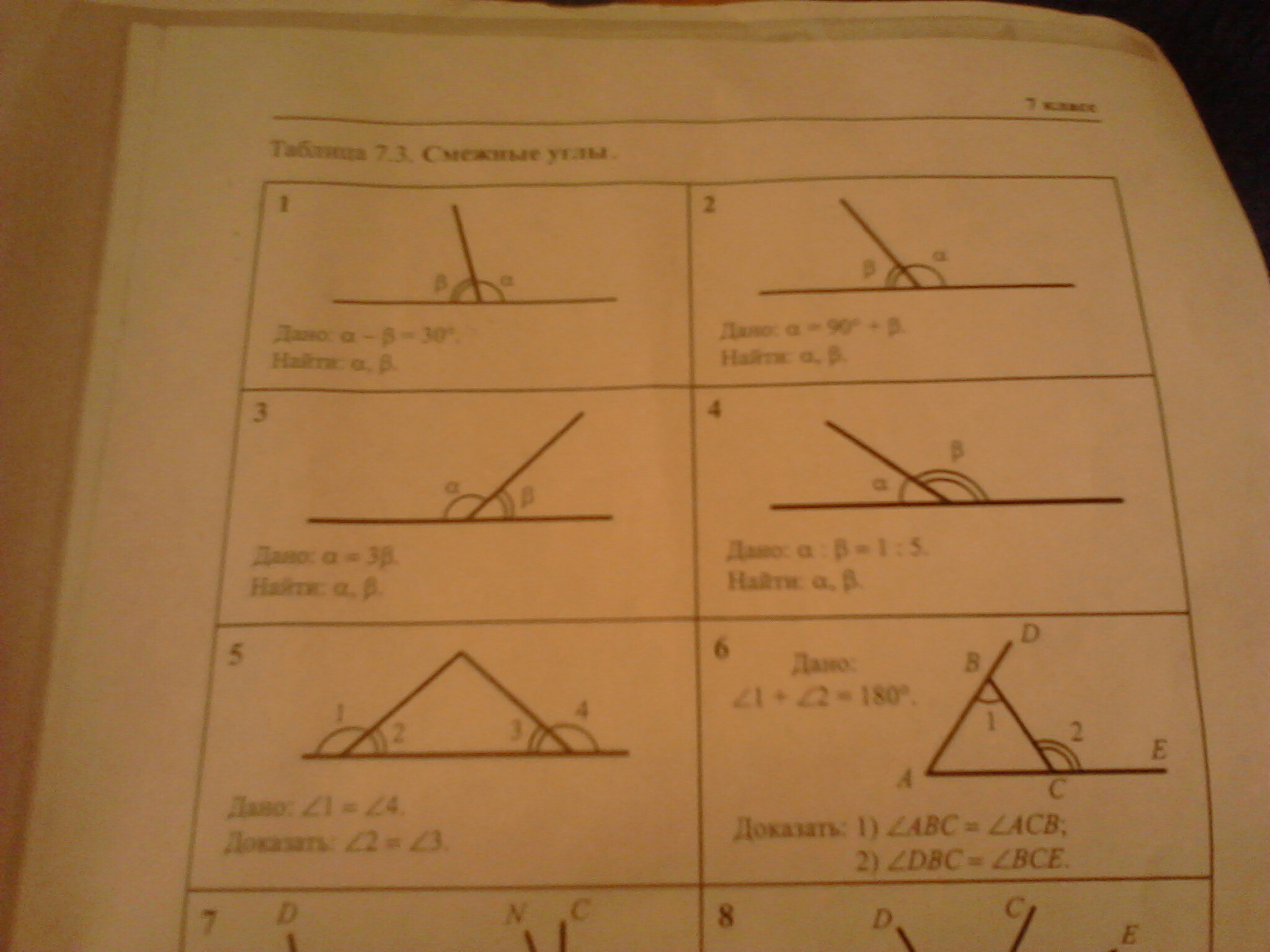 5)угол 1 смежный с углом 2 , а угол 3 смежный с углом 4 , т.к угол 1= углу 4 ,то и угол 2= углу 3