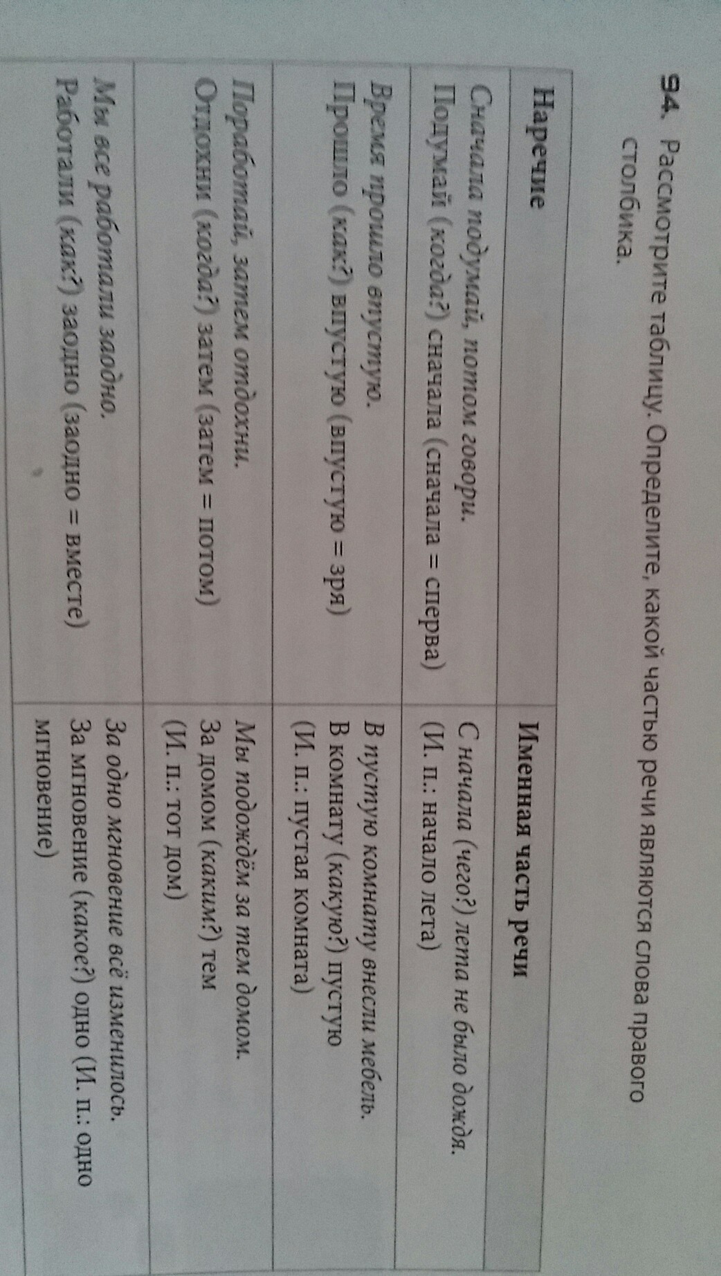 Помогите пожалуйста, определите по фото, какой частью речи являются все слова из правого столбика?