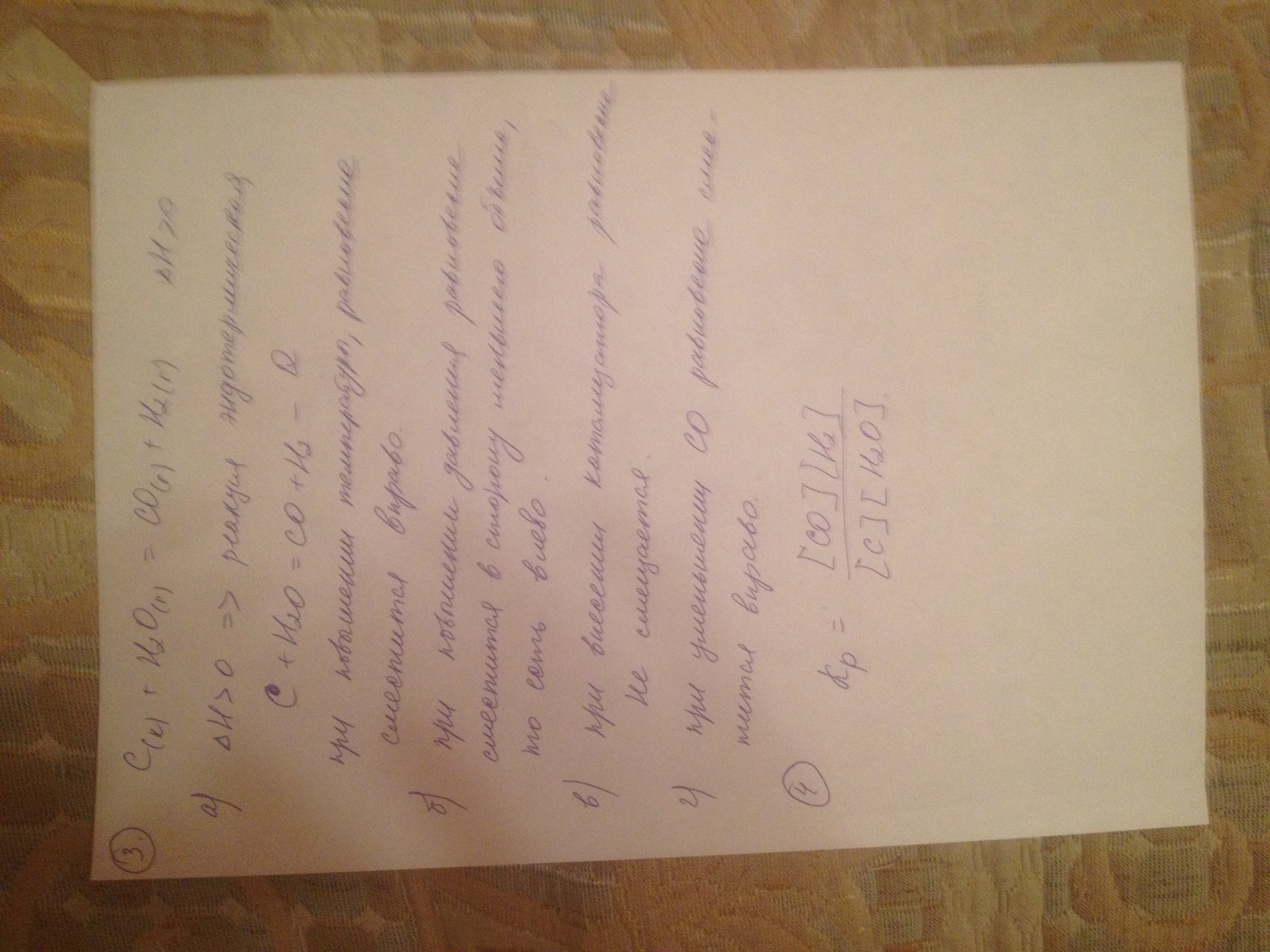 + H2O(г) → CO(г) + H2(г); ∆Н > 0, если: а) повысить температуру; б) умень-