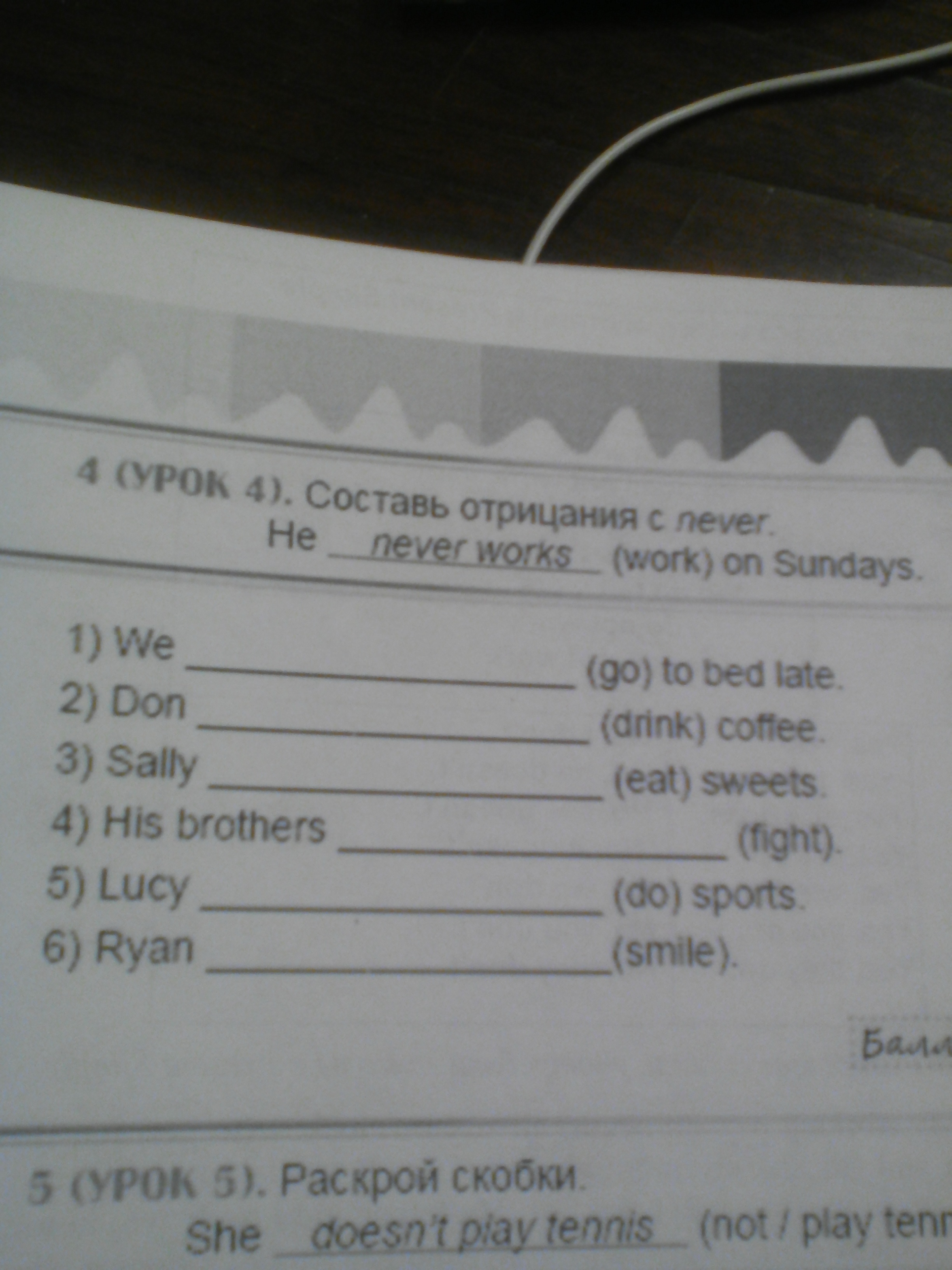 1)never go 2)never drinks 3)never eats 4)never fights 5) never does 6) never smiles