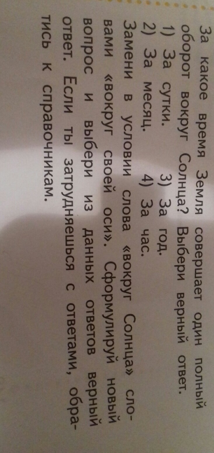 За какое время Земля совершает один полный оборот вокруг Солнца выбери правильный ответ Замени условия слова вокруг Солнца словами вокруг своей оси