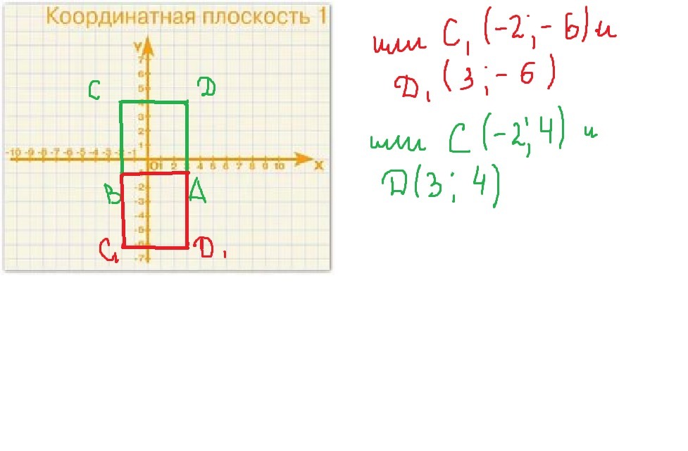 2) На координатной плоскости построен квадрат ABCD. Извесны координаты его вершин A(3; -1) и B(-2;-1). Найдите координаты вершин C и D!!! Ответ: (-2; 4), (3; 4) или (-2;-6), (3;-6).