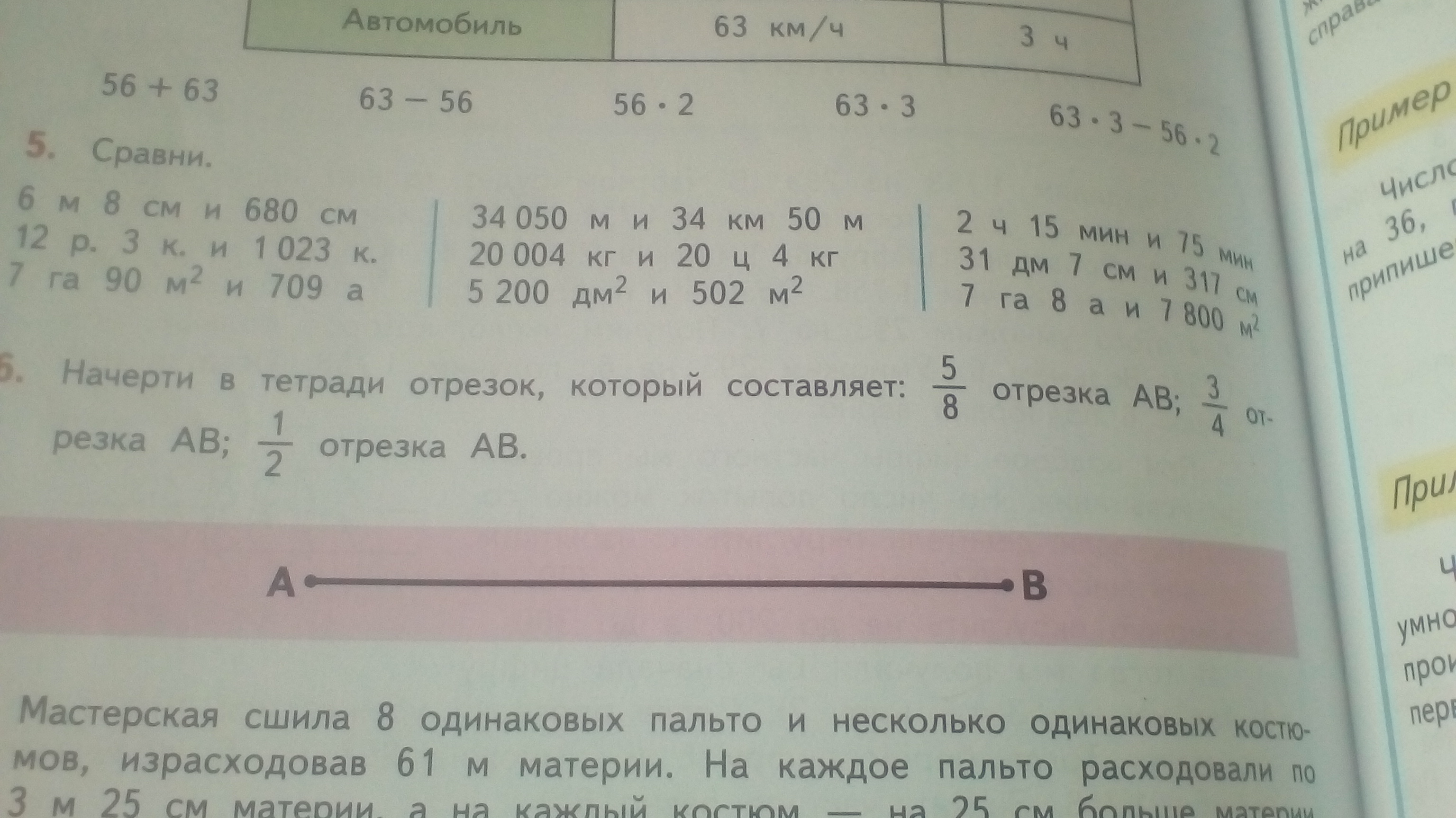 Берём длину отрезка делим на 8 умножаем на 5,либо длину умножаем на 5/8