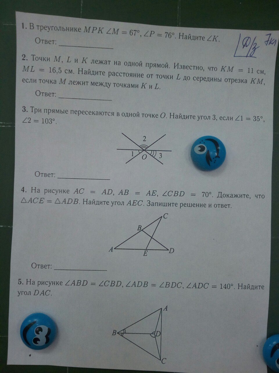 Помогите решить задачу №4. Из всей задачи я понял что нужно найти угол A, и тогда треугольники будут равны по 2 сторонам и углу.
