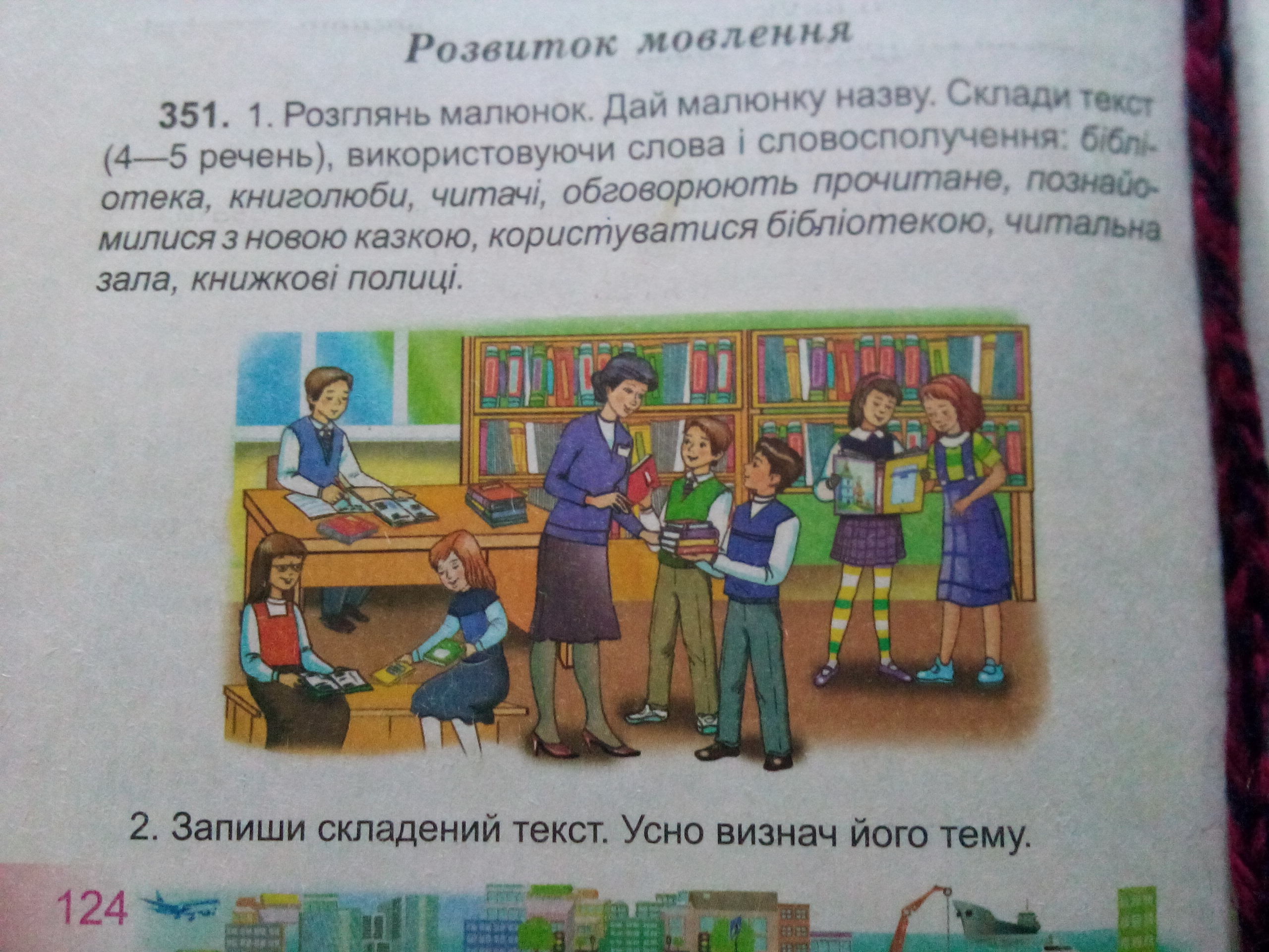 Сьогодні у нас з класом відбувся невеличкий похід до бібліотеки. Увійшовши в читальну залу ми відразу побігли до книжкових полиць, там було дуже багато різних книг. Кожна з них має гарну обкладинку і чудово пахне. Ми, як справжні книголюби почали обирати книжку собі для прочитання, а потім обговорювали прочитане. Таким чином, нас познайомили з новою казкою і ми вирішили, що тепер навідуватися до бібліотеки будемо частіше.