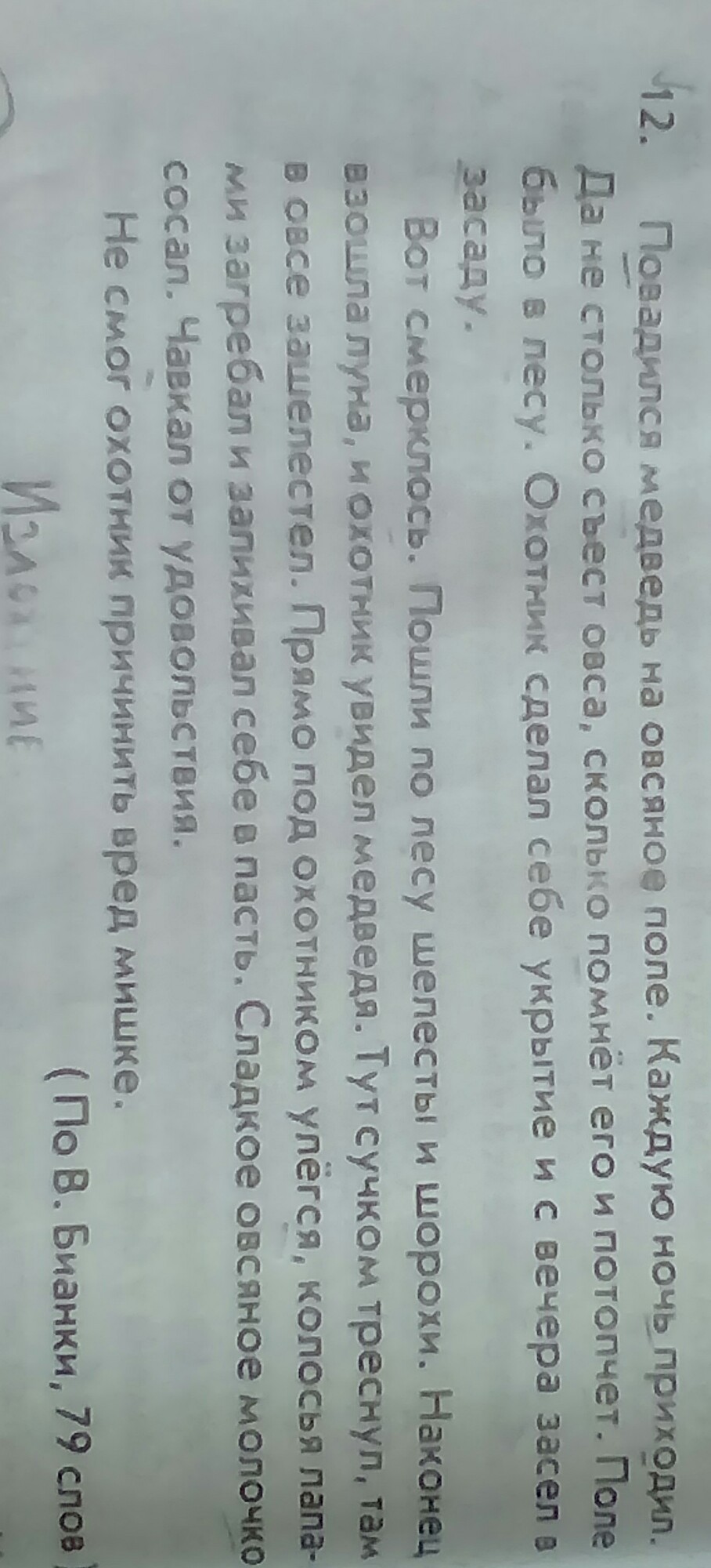 повадился, овсяное, приходил, овса, помнёт, потопчет, засел, в засаду, пошли, шорохи, взошла, зашелестел, колосья, загребал, молочко, сосал, удовольствия, мишке.