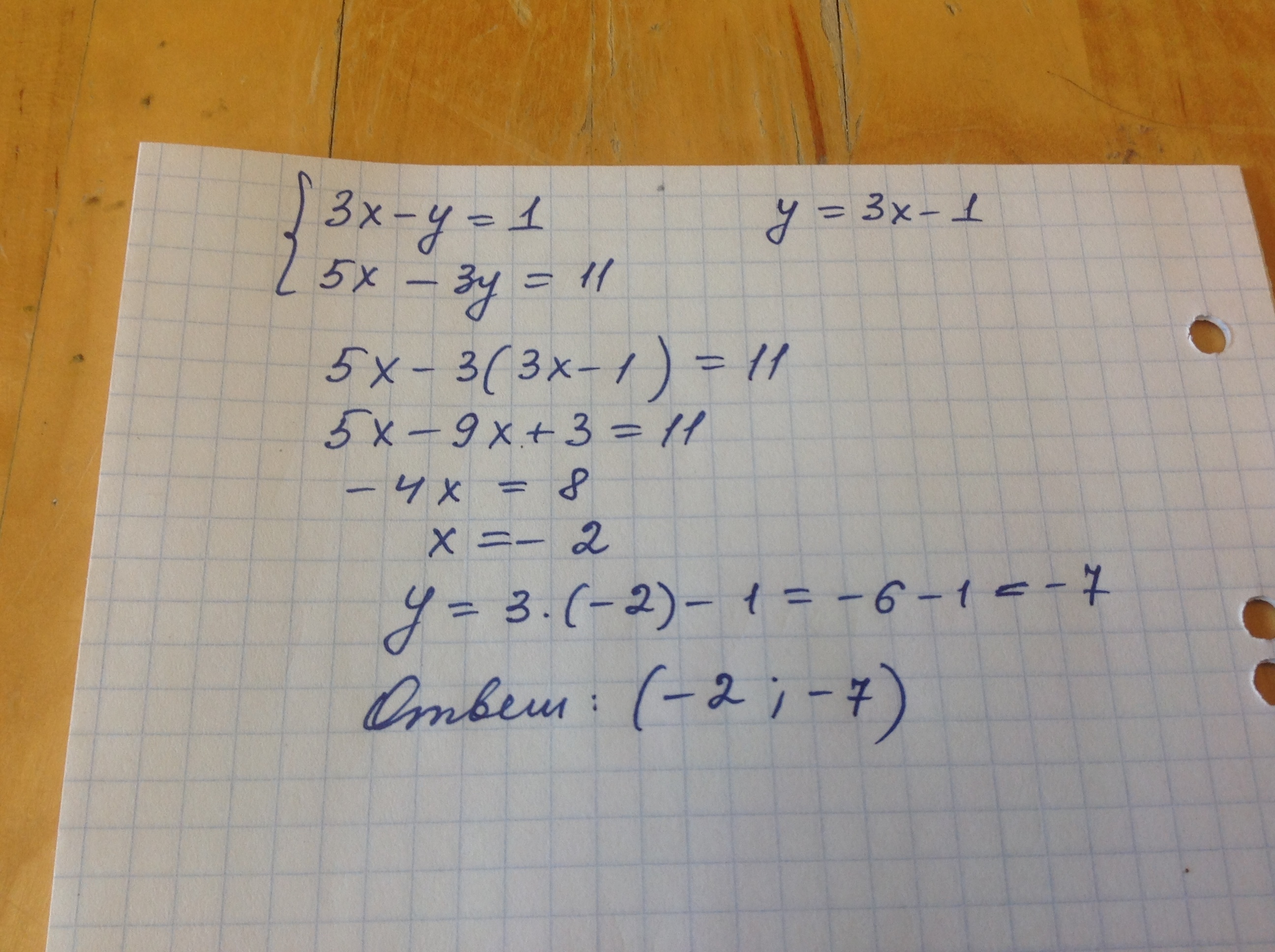 реши пж еще. решите систему уравнений: 7х+3у=-1 3х-7у=17