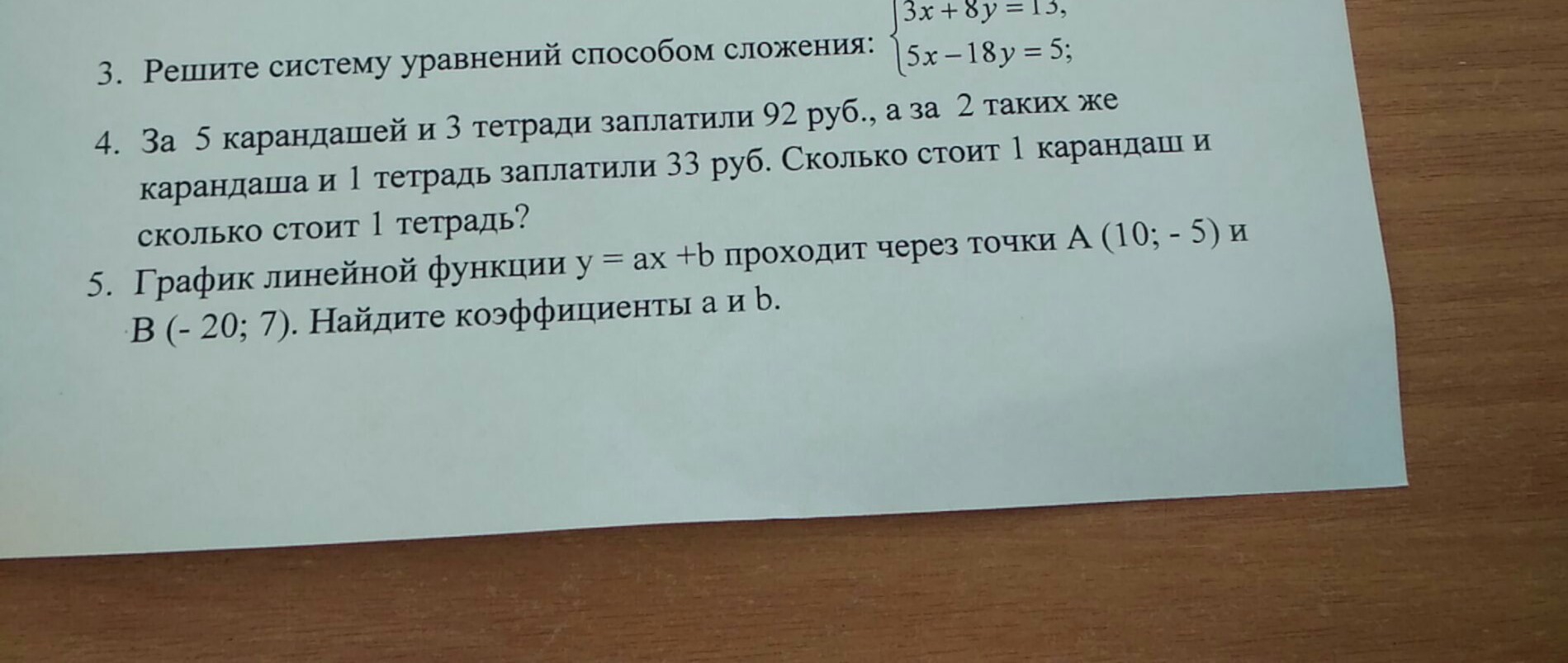 4) Пусть 1 карандаш стоит х руб., а одна тетрадь y, тогда из условия задачи можно записать