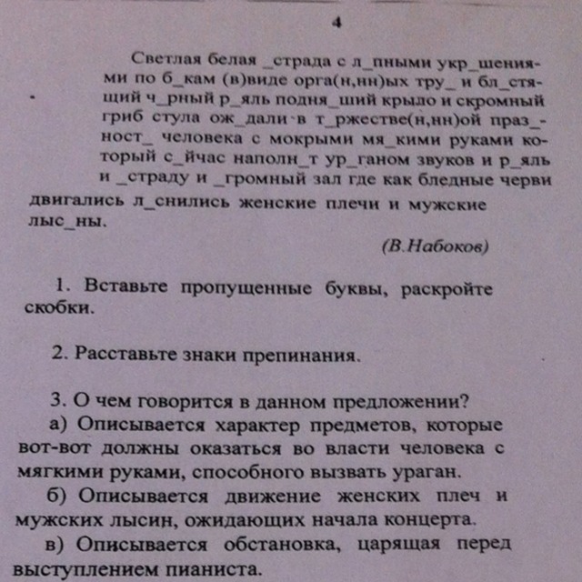 Ответ на 3 вопрос: в) Описывается обстановка, царящая перед выступлением.