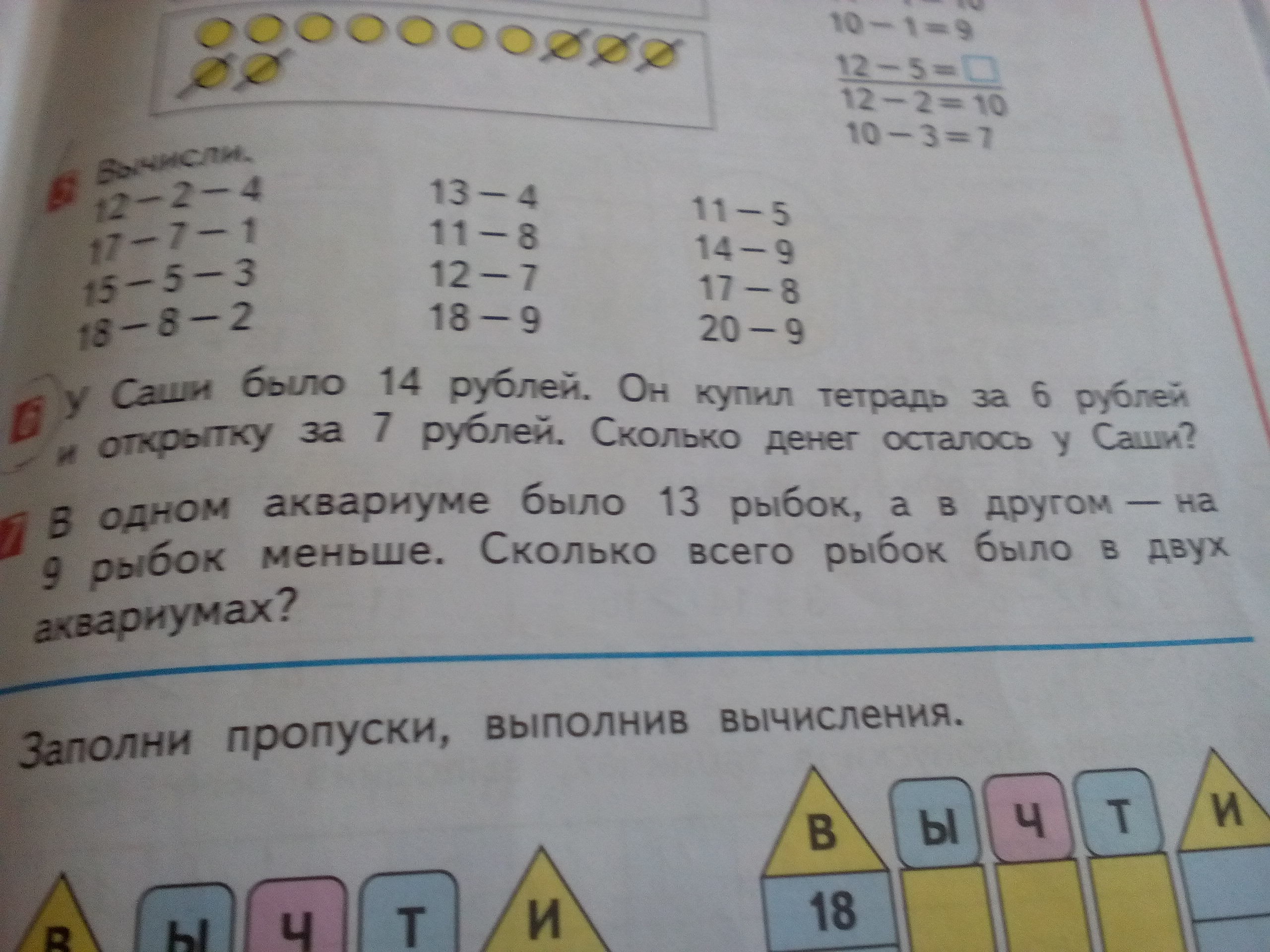 1)13-9=4(рыб)-во втором аквариуме