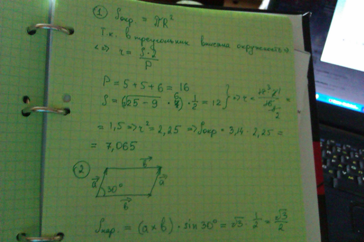 1)Площадь круга, вписанного в равнобедренный