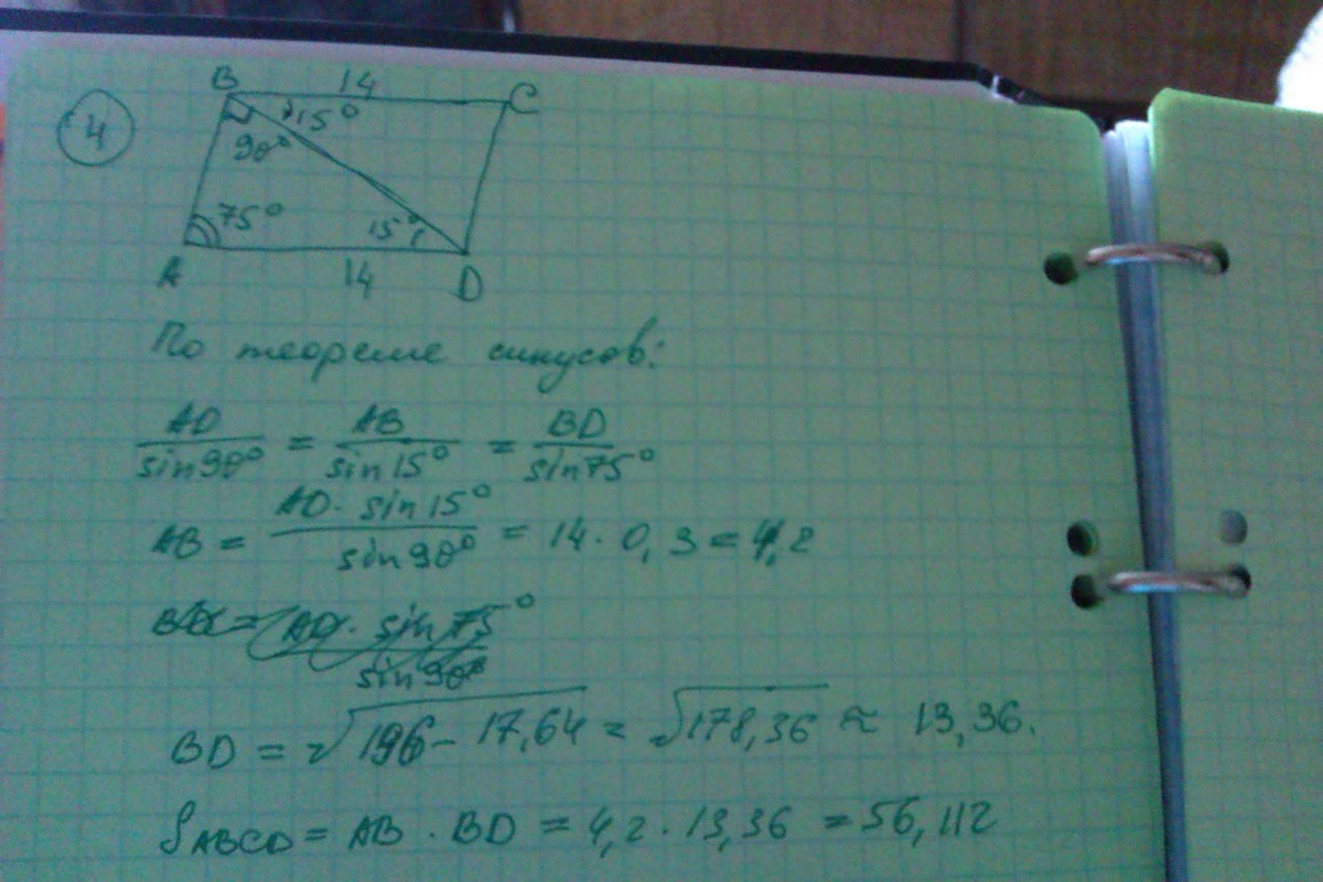 Большая сторона параллелограмма равна 14 см, тогда площадь данного параллелограмма равна 56,112 на счет 4 я не очень уверена