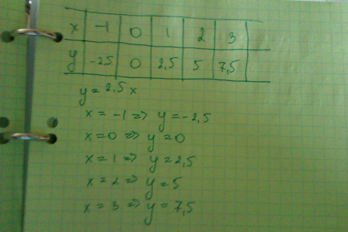 Составьте таблицу значения функции y=2.5x, где -1 ≤ x ≤ 3, с шагом, равным 1. В ответ запишите сумму всех полученных значений функции