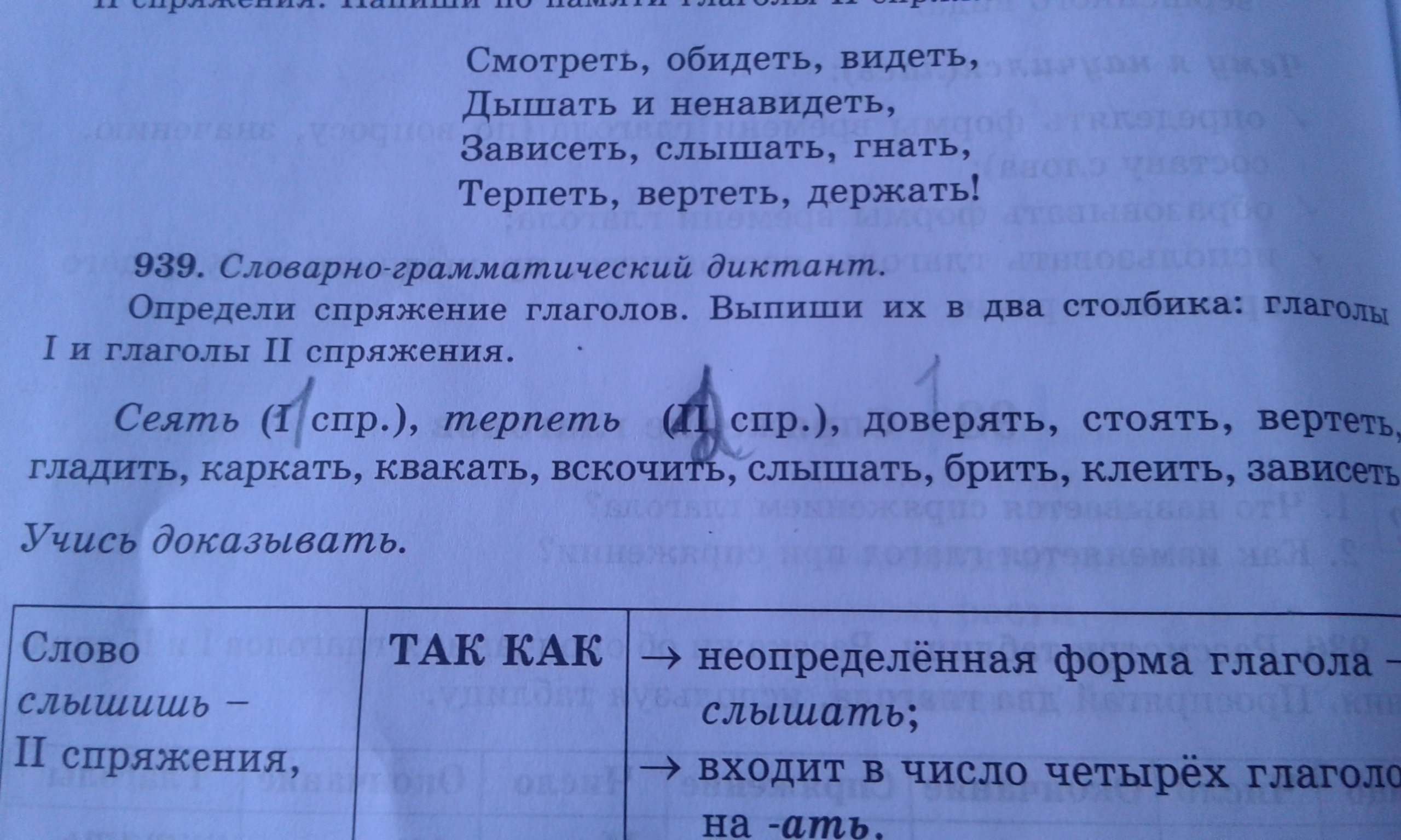 стоять - 1 спр; вертеть - 2 спр; гладить - 2 спр; каркать - 1 спр; квакать - 1 спр; выскочить - 2 спр; слышать - 2 спр; брить - 1 спр; клеить - 2 спр; зависеть - 2 спр.