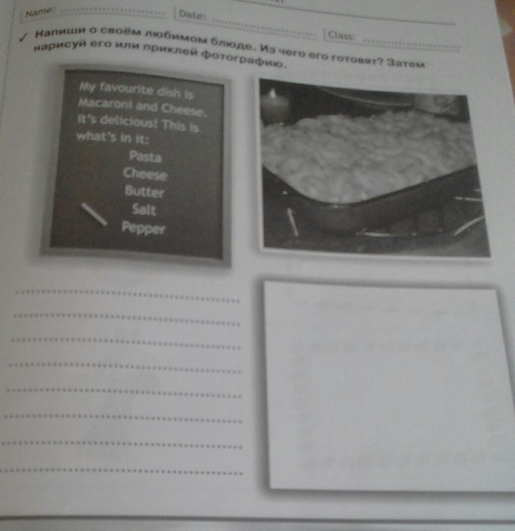 напиши о своём любимом блюде . Из чего его готовят? затем нарисуй или приклей фотографию блюда.на англ.яз