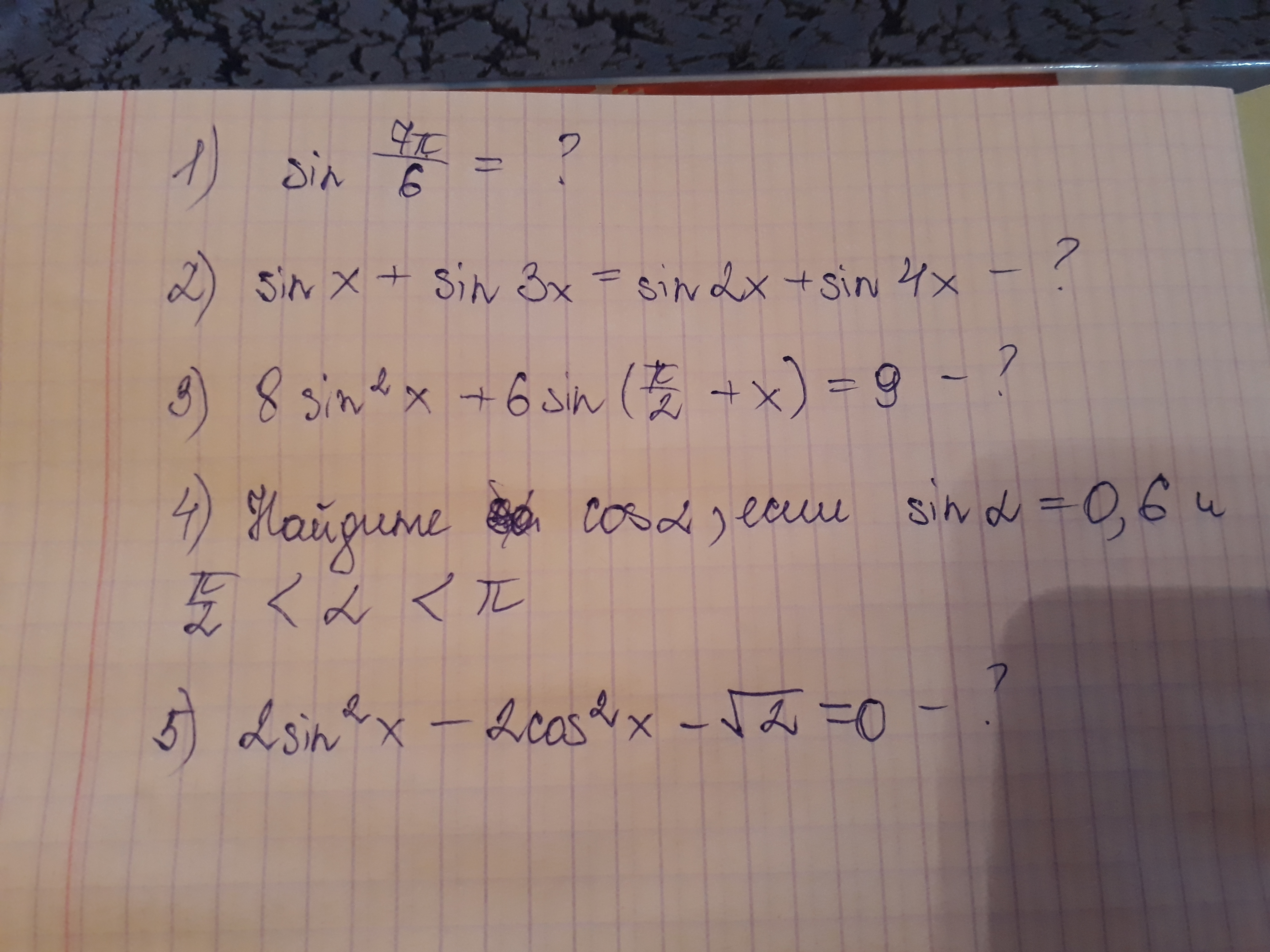 1) Sin7π/6 = Sin(π + π/6) = - Sinπ/6 = -1/2