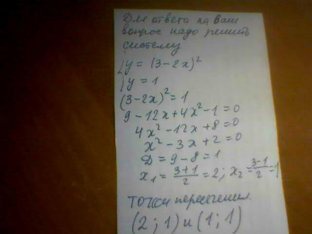 у = (3-2х)^2 и у = 1